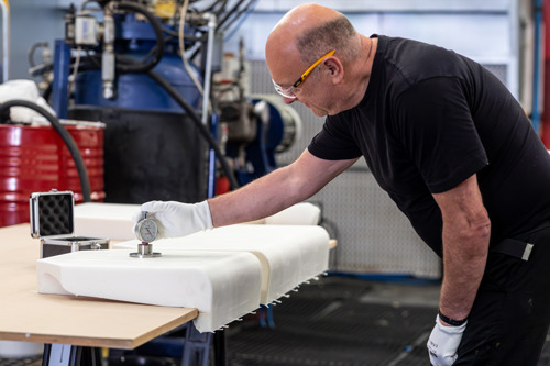 Our BioPRO® Foam manufacturing doesn’t stop at innovation in chemistry, it extends into precision production. Rather than cutting foam from large blocks (a practice that creates significant waste), each BioPRO® cushion is moulded to exact specifications for shape, weight, and density. This means: