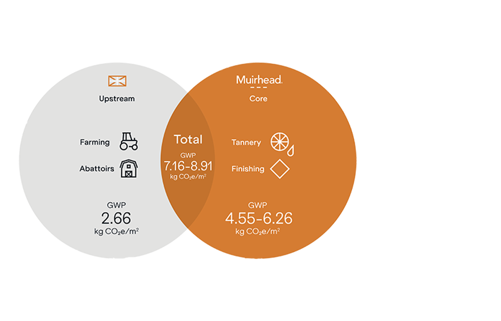 LCA measures impact of production as CO₂e/m², our LCA of 8kg is the lowest in the world published for leather.
